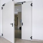 Противопожарные металлические двери могут быть одностворчатые или двустворчатые, открывающиеся влево или вправо. Дверное полотно оснащено ригельным замком, который может запираться в 3-х его точках в районе вертикального и горизонтального притворов. По периметру дверной коробки устанавливается термоуплотняющая лента для заполнения зазора между полотном и коробкой в случае пожара. Со стороны шарниров рамы имеются несъемные ригели.